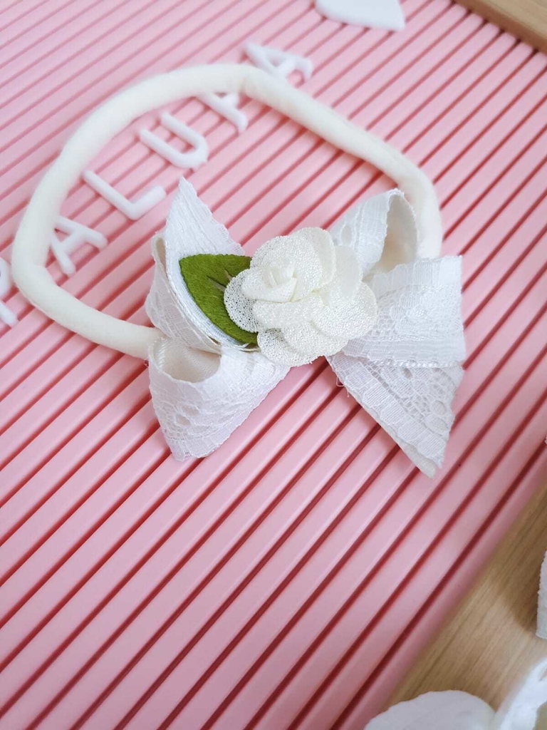 Faixa delicada feita em renda com florzinha creme.