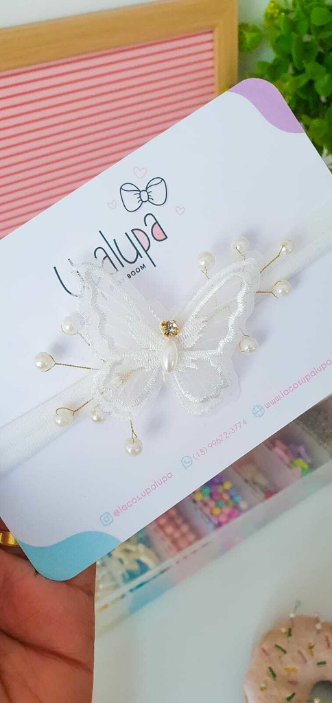 ✨ Faixa de Borboleta Bordada com Pérolas (8.5cm) – o toque de elegância que faltava para o visual da sua pequena!