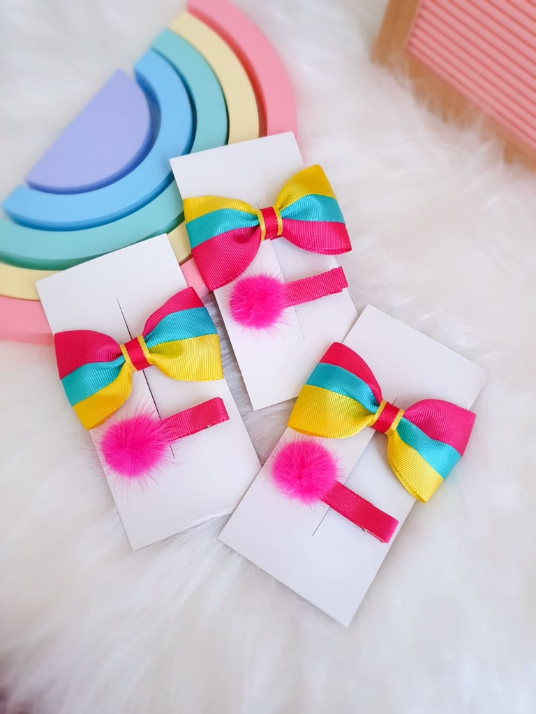 Deixe a sua pequena ainda mais estilosa com o nosso Laço Tricolor Colorido! 🌈 Com uma combinação vibrante de cores, esse laço é ideal para qualquer ocasião, seja na escola ou em uma festa.