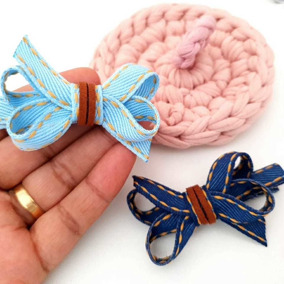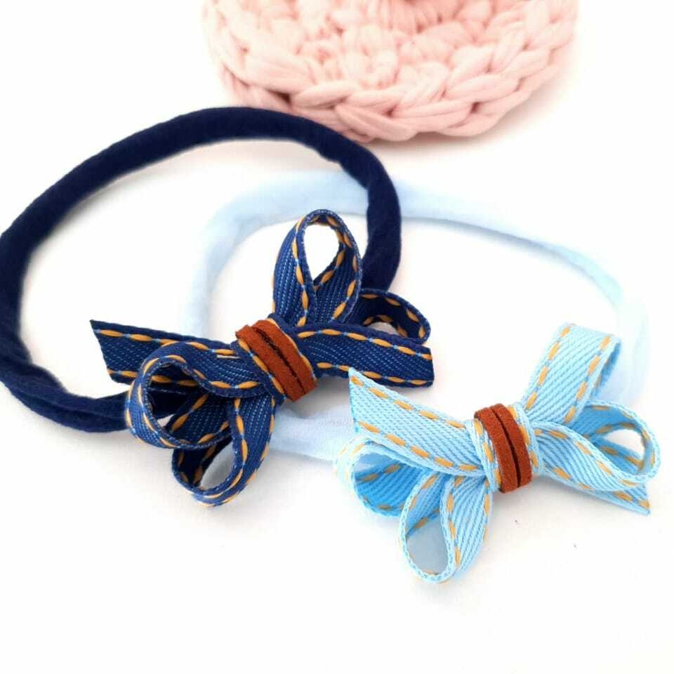 Lacinho Jeans para Bebê com Couro (5cm): O Toque Estiloso que Faltava!