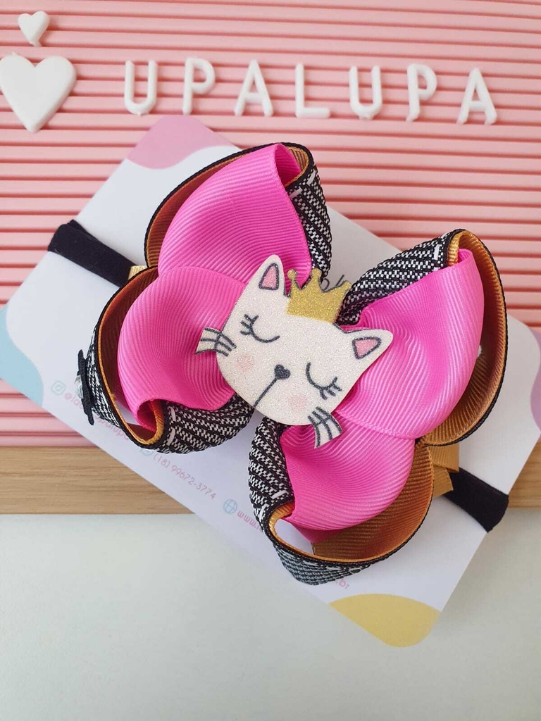 Laço especial de gatinha, preto com rosa, modelo estruturado, as mamães amam este modelo.
