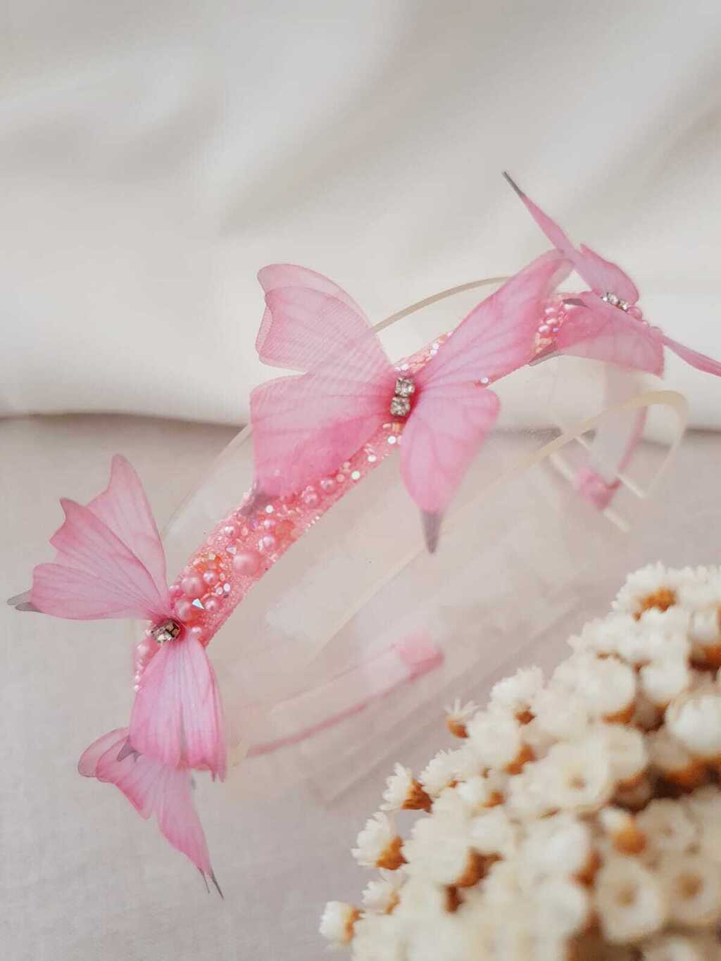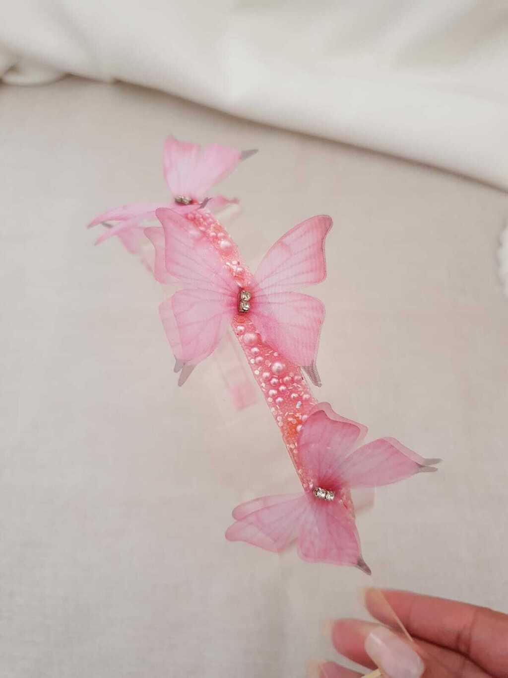 Tiara Cristal com Borboleta rosas - Um toque de elegância para sua princesa! ✨