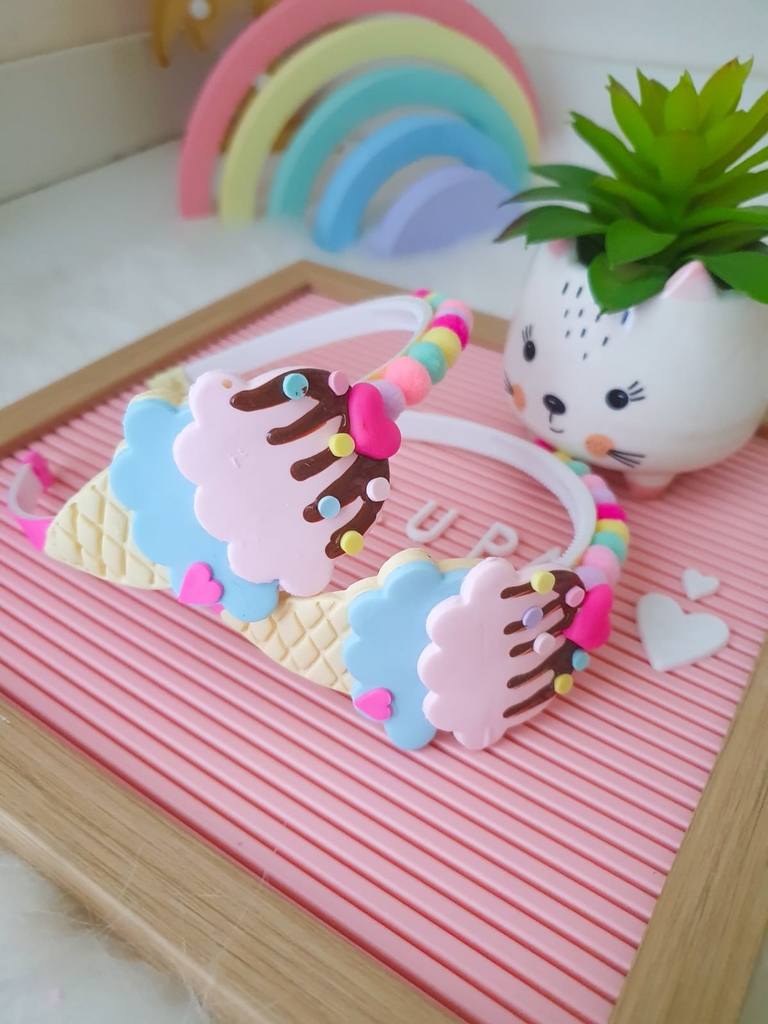 🍦 Tiara de Sorvete Calda – o acessório perfeito para encantar o visual da sua pequena com um toque divertido e colorido!