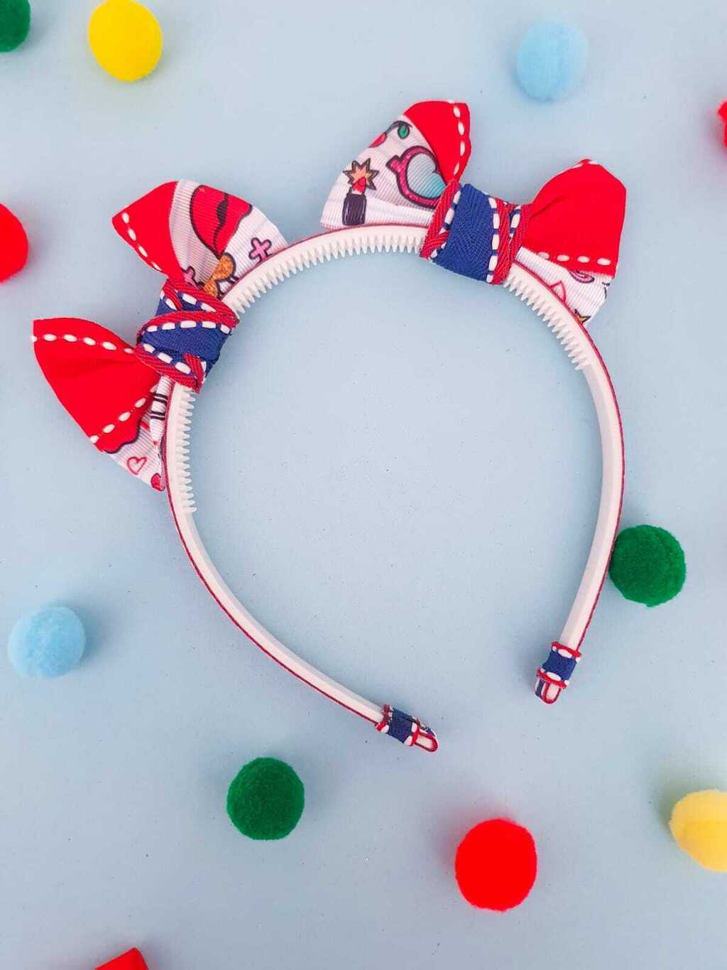 Tiara Escolar Vermelha e Azul 🎀 Prepare-se para a revolução do estilo escolar com a nossa Tiara Escolar Vermelha e Azul! Feita com amor e um toque de mágica, essa tiara vai fazer seu pequeno parecer um verdadeiro superstar da sala de aula!